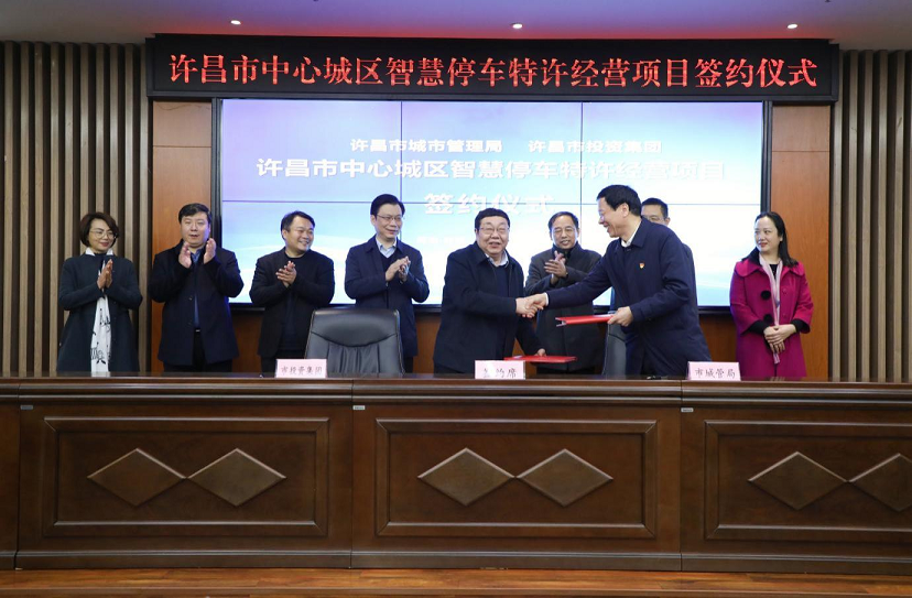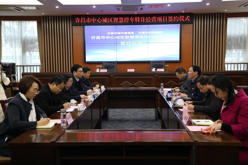 2023年2月10日,許昌市中心城區(qū)智慧停車特許經(jīng)營(yíng)項(xiàng)目簽約儀式在市創(chuàng)業(yè)服務(wù)中心一樓會(huì)議室舉行。許昌市城管局黨組書記、局長(zhǎng)楊宏善,許昌市城管局黨組成員、副局長(zhǎng)范留柱,許昌市投資集團(tuán)黨委書記、董事長(zhǎng)楊增君,許昌市投資集團(tuán)黨委副書記、總經(jīng)理李戈等出席簽約儀式。