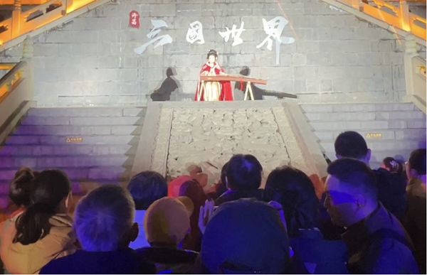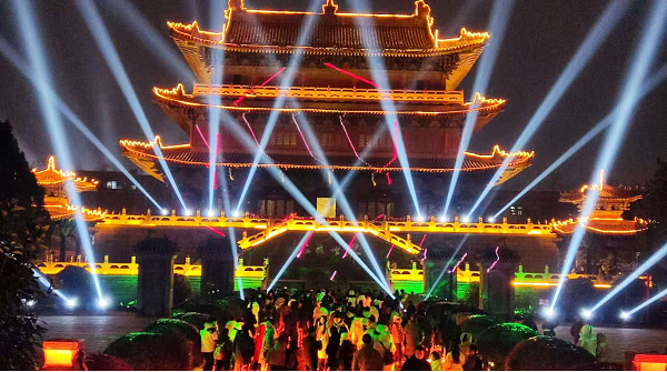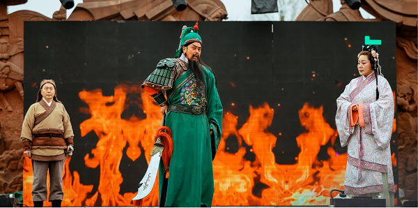 景區(qū)以三國(guó)文化為主題,打造了文廟武廟結(jié)合的行進(jìn)式光影秀《春秋・憶夢(mèng)》,通過(guò)沉浸式演藝和建筑投影等創(chuàng)新形式,生動(dòng)再現(xiàn)了關(guān)云長(zhǎng)的英雄故事,為游客獻(xiàn)上了一場(chǎng)震撼心靈的文化盛宴。同時(shí),景區(qū)還開(kāi)展了多場(chǎng)《忠義千秋》情景劇演出,全新包裝的演員陣容和重新打造的演出內(nèi)容,吸引了眾多游客駐足觀看,贏得了陣陣掌聲。此外,夜間的古風(fēng)舞蹈、傳統(tǒng)器樂(lè)演奏及民俗文化表演,更是讓游客感受到了濃濃的新春年味,場(chǎng)場(chǎng)演出人氣爆滿。