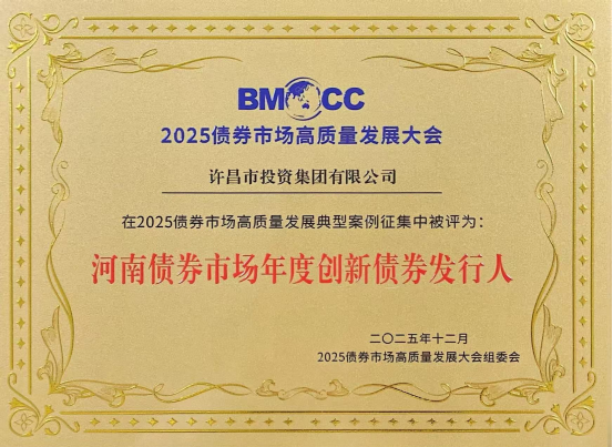 近日,2025債券市場高質(zhì)量發(fā)展大會在鄭州隆重舉行。許昌市投資集團有限公司憑借在債券融資領(lǐng)域的卓越創(chuàng)新實踐與突出表現(xiàn),在2025債券市場高質(zhì)量發(fā)展典型案例征集中,榮獲大會頒發(fā)的“河南債券市場年度創(chuàng)新債券發(fā)行人”稱號。
